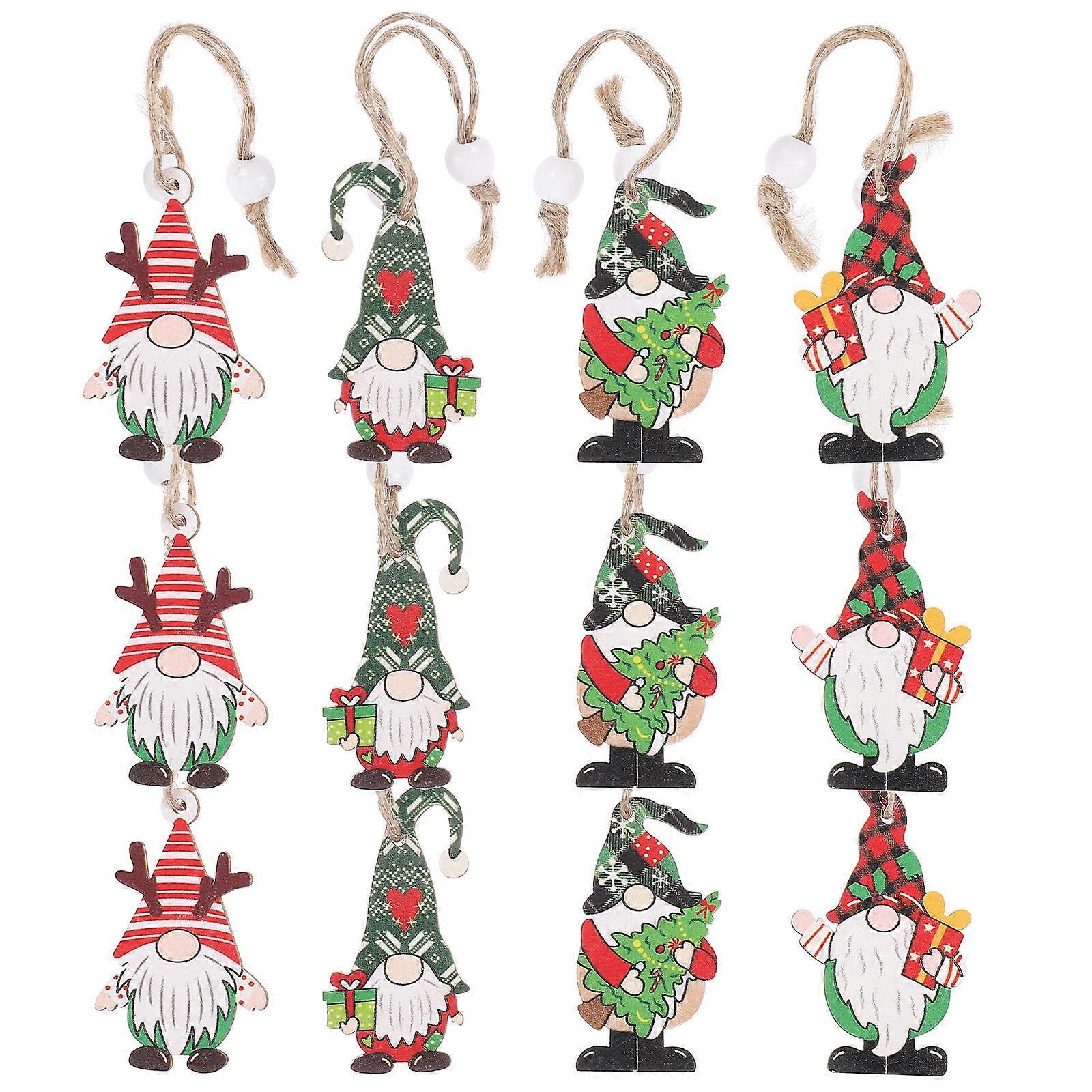 Tree Hanging Ornament Christmas Wood Pendants Winter Theme Party Decoration 6x4cm Santa Claus Shape 12Pcs