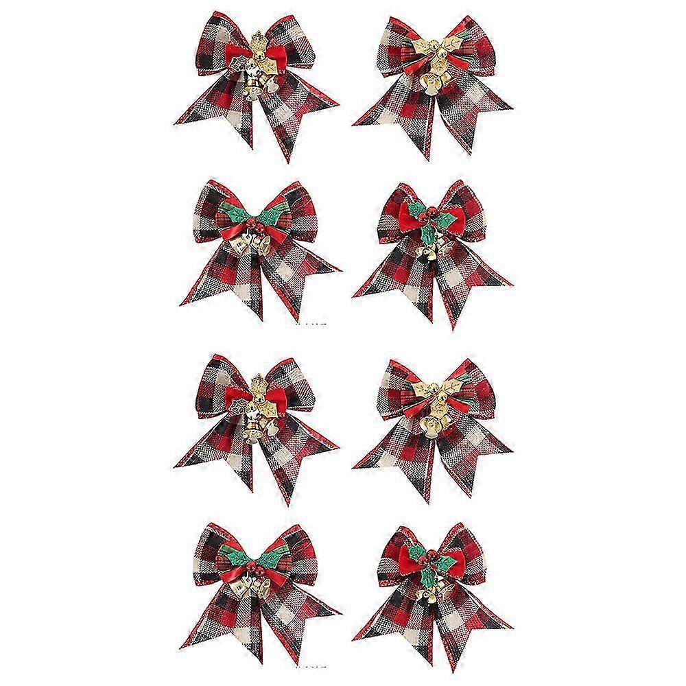 8 Pack Christmas Bows with Bells for Tree Home Holiday Decorations