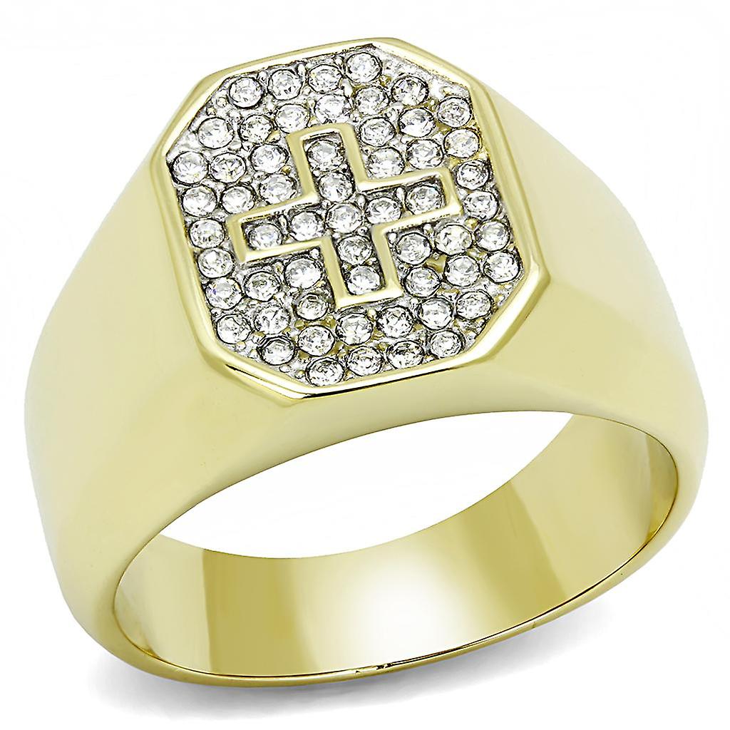 Two-Tone IP Gold (Ion Plating) Stainless Steel Ring with Top Grade Crystal in Clear for Women Style TK3270