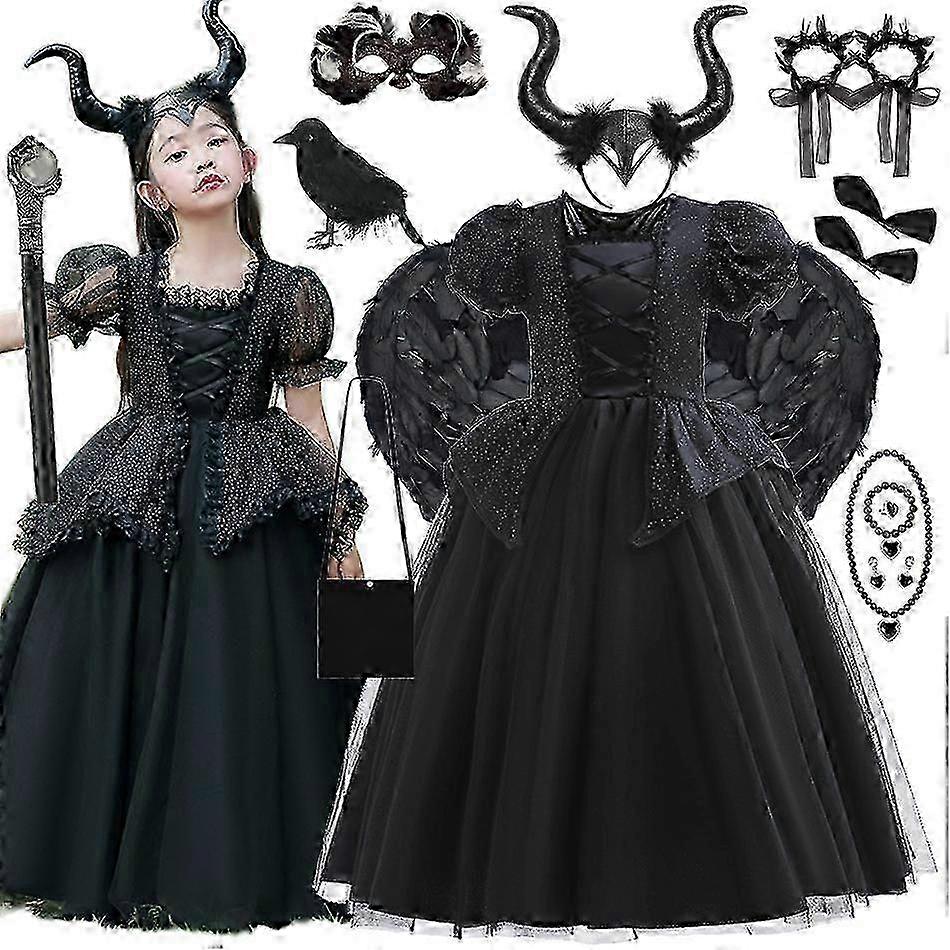 Disney Girls Maleficent Dress Children Evil Queen Fairy Halloween Costume Kids Demon Queen Clothes Carnival Black Witch Gown