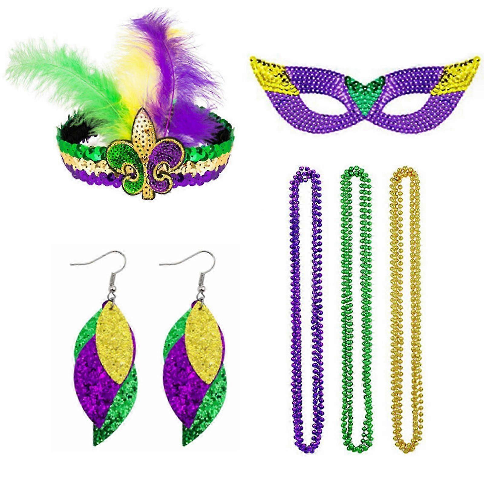 Disco Ball Costume Set: Unisex Hat, Mask, Sequins Earrings & Necklace for Halloween Party