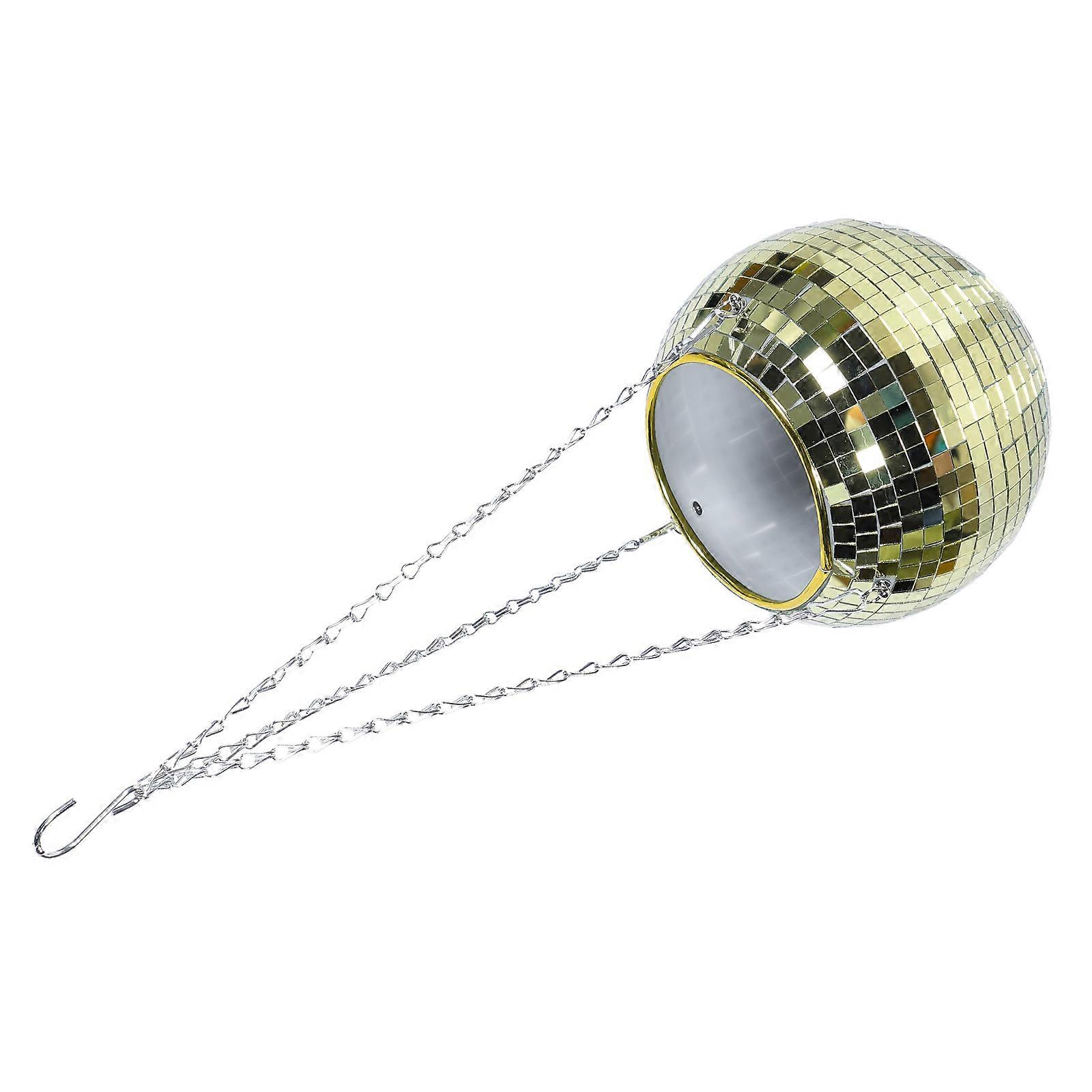 Disco Ball Flower Pot Hanging Spherical Planter Home Gardening Decoration Golden 52x20cm Plastic Metal Plant Growing 1Set