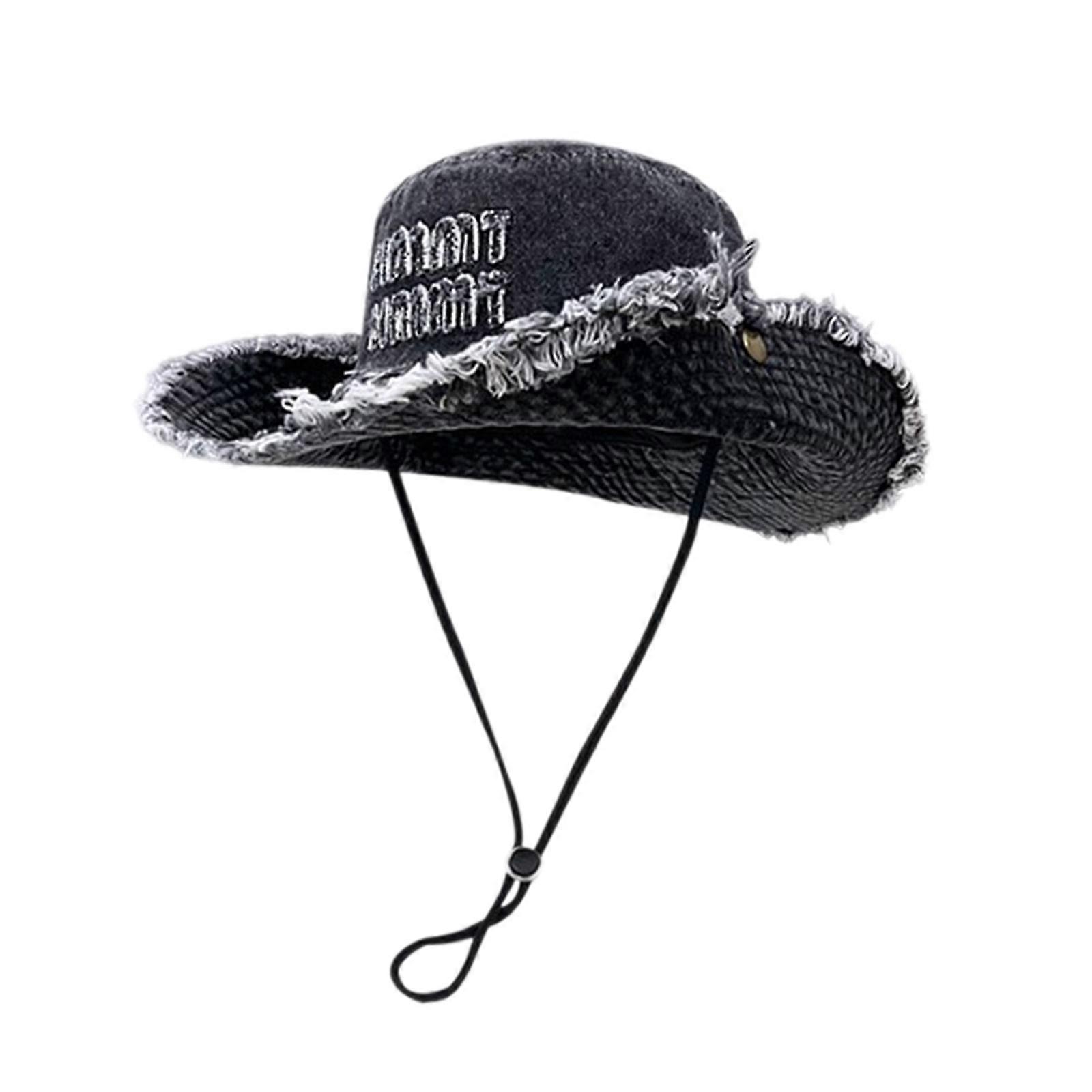 Distressed Sun Hat Breathable Fisherman Hat with Windproof Rope Sunproof Sunshade for Outdoor Surprise Gift Black