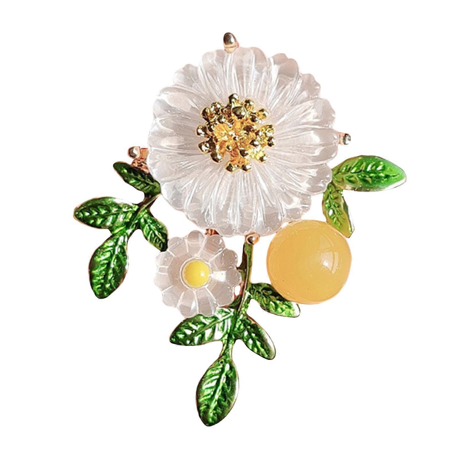 Daisy Floral Brooch Fashionable Green Leaf Flower Lapel Pin Breastpin Accessory for Daily Commute and Gatherings