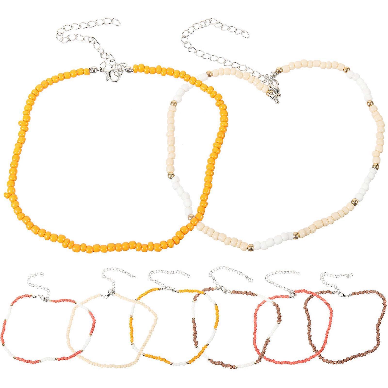 Colorful Bead Necklace Chain Jewelry For Daily Wear Adjustable Length 8Pcs