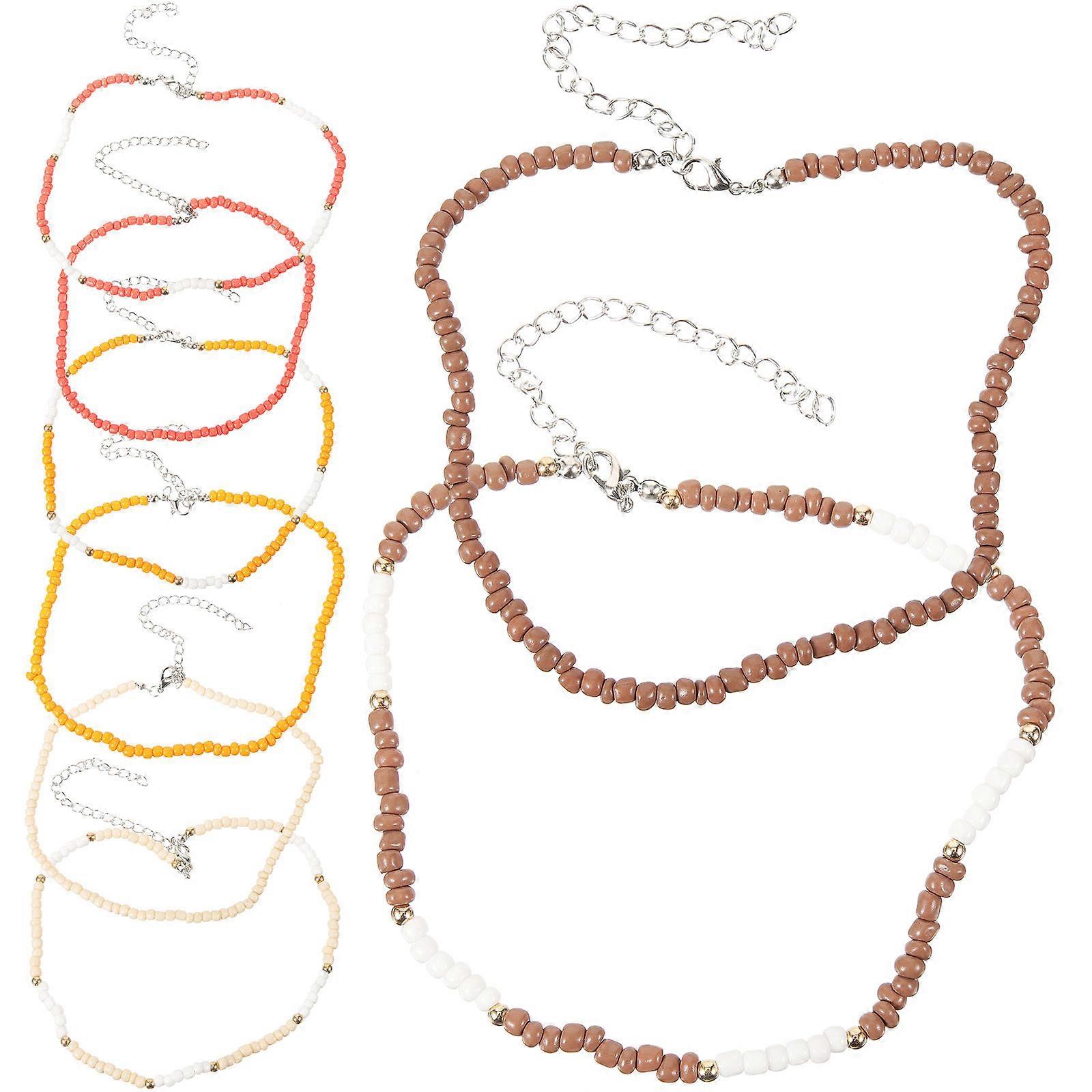Colorful Bead Necklace Chain Jewelry For Daily Wear Adjustable Length 8Pcs