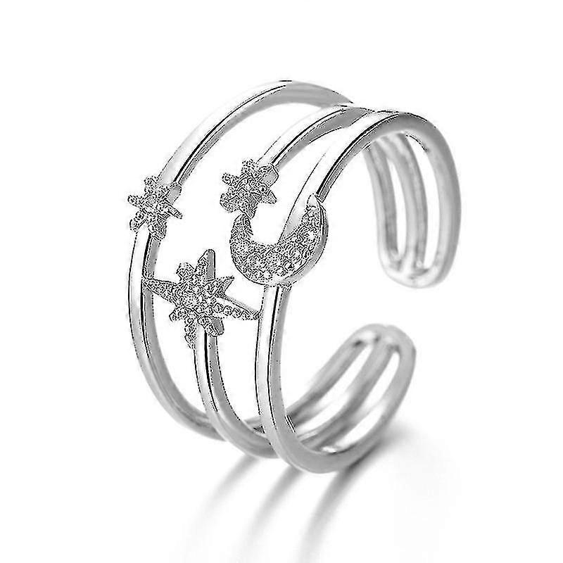 Dainty Crystal Astral Moon Open Ring Diamond Adjustable Finger Thumb Band Jewelry Gifts Bb