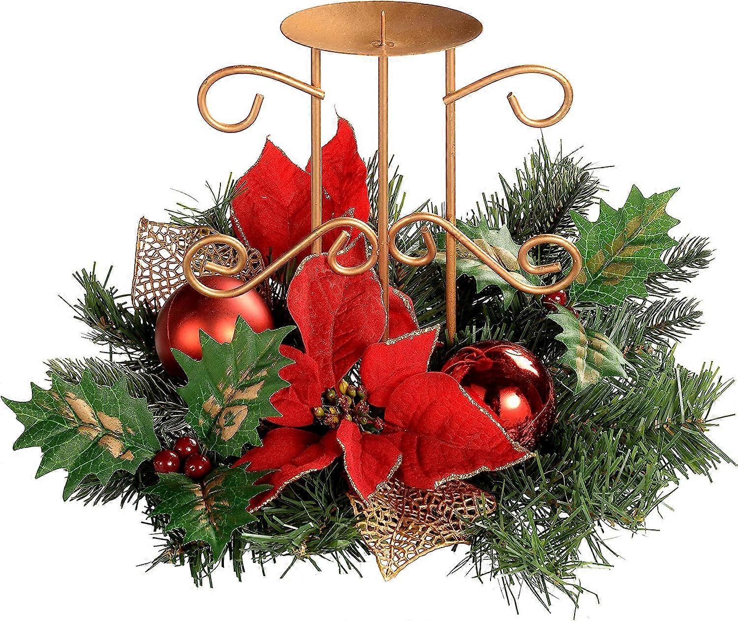 Decorated Table Centre Piece with Single Pillar Candle Holder, 22 cm - Red/Gold1pcs)