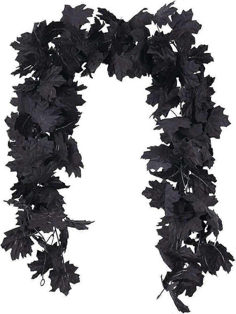 Decorations Halloween Garland,black light halloween decorations Fall Wall Hanging Maple Leaves, Artificial black maple leaf garland Halloween Supplie