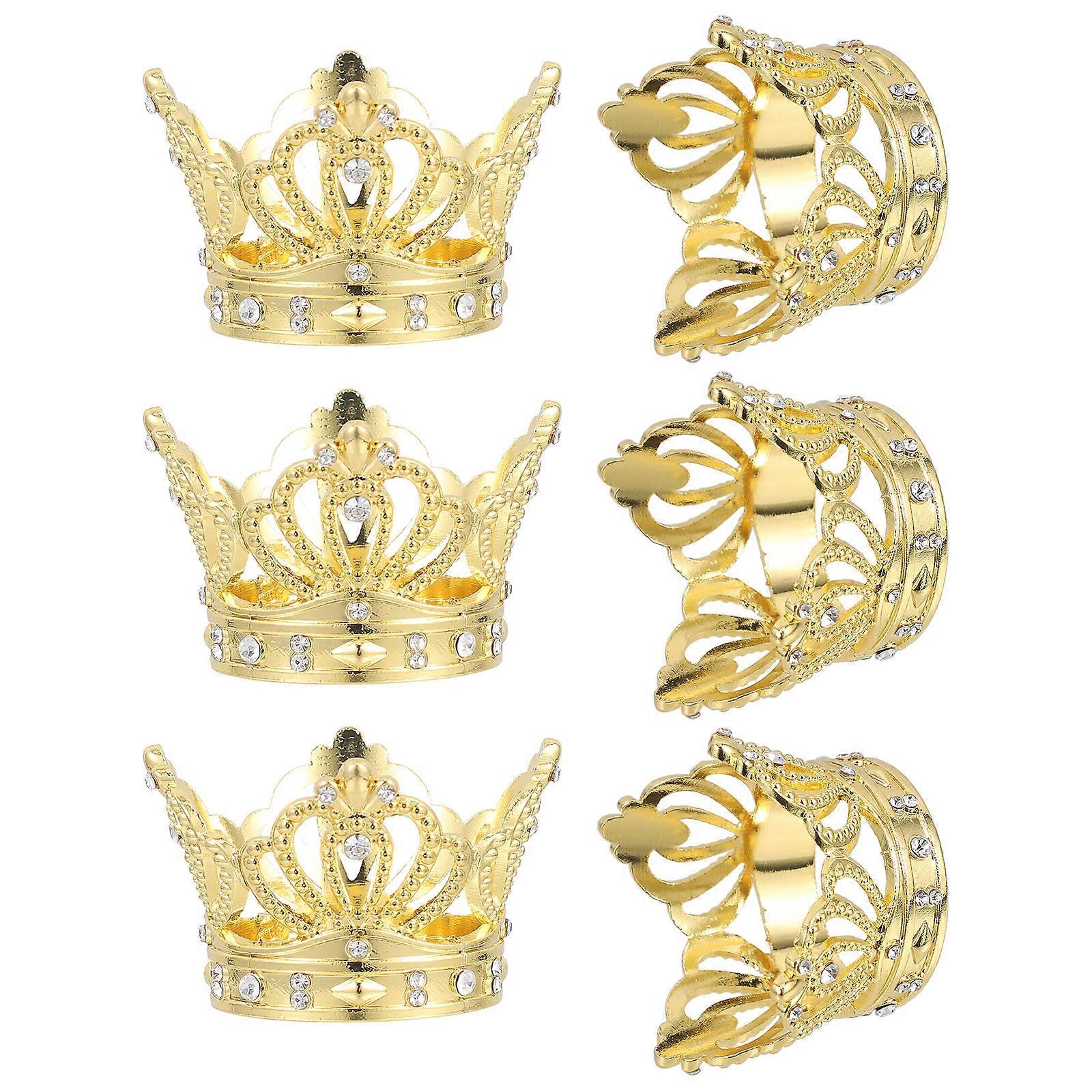 Golden Crown Napkin Ring for Decoration 6Pcs Bling Rhinestone Table Rings