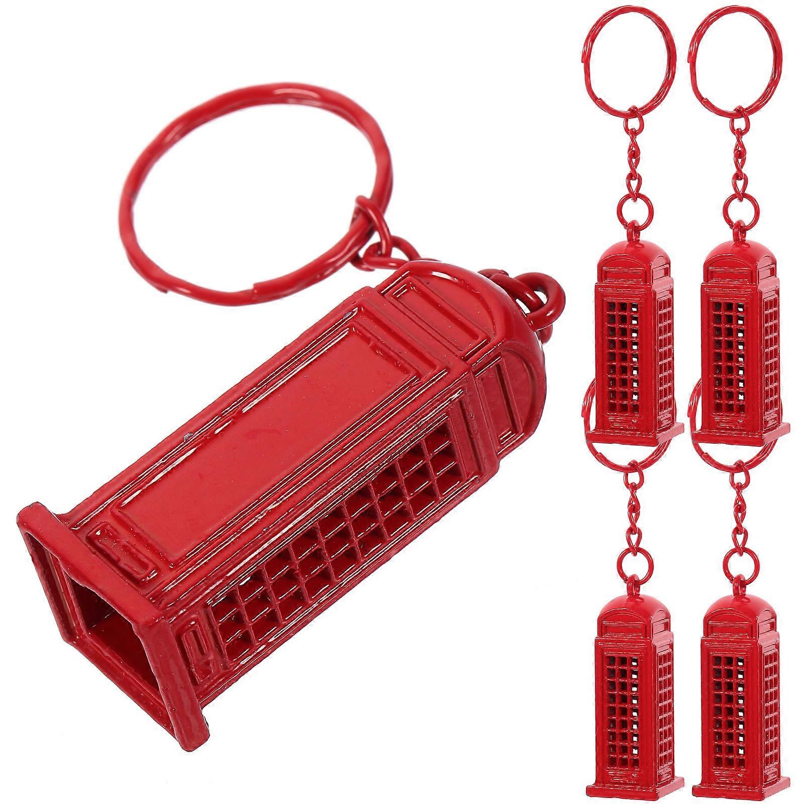 Telephone Booth Keychain Pendant for Decoration 5Pcs Red Alloy Charms