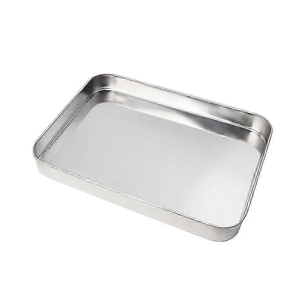 10 Inch Stainless Steel Deep Baking Pan for Desserts, Fish, Cookies - 24.5x18.6x2.5cm Silver