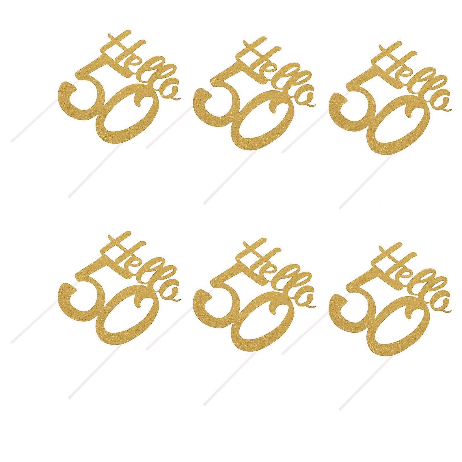 Golden Glitter Paper Cake Topper Decoration for Birthday Parties Perfect for Desserts and Fruits 6 Pcs
