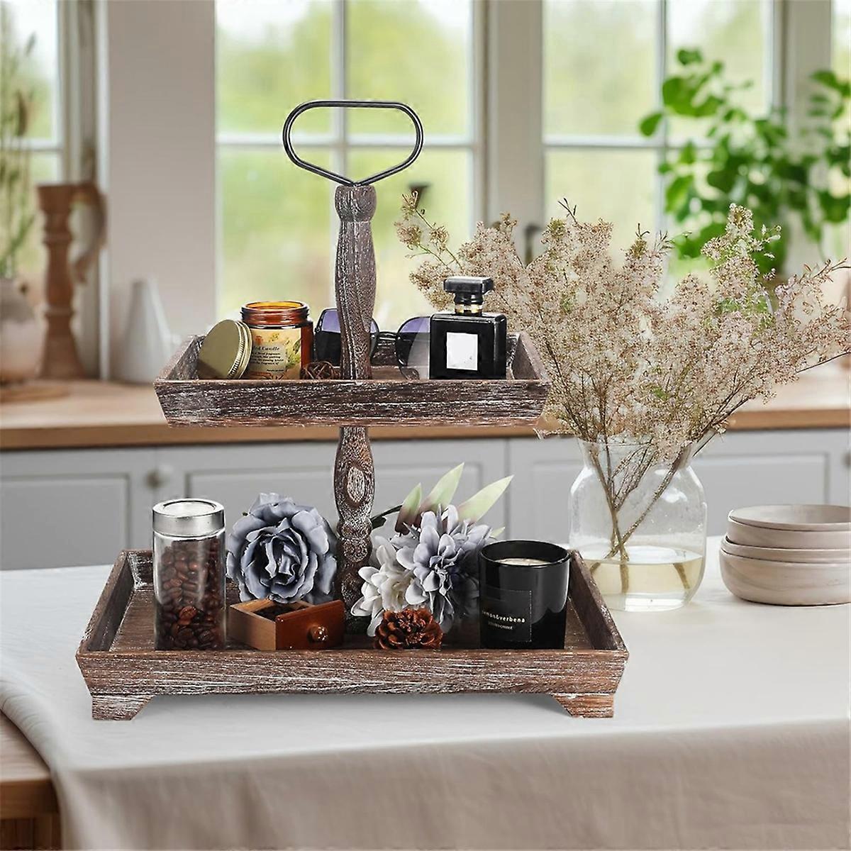 Dessert Stand Double Layer Cake Tray Dessert Decoration Tray Display Stand,Light Roasted Color