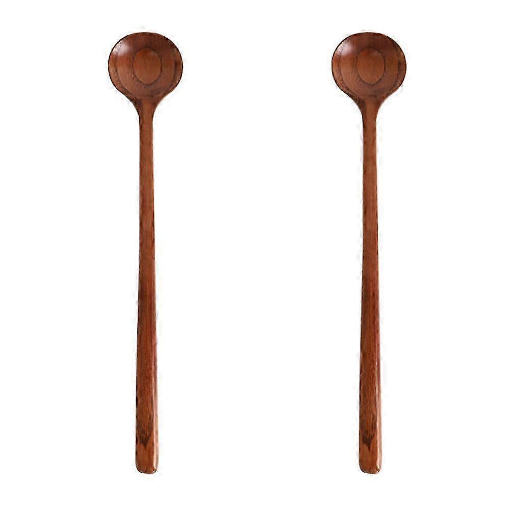 2 Pcs Vintage Wooden Spoons for Dessert Soap Sugar Tableware 27.9x4.6cm Brown