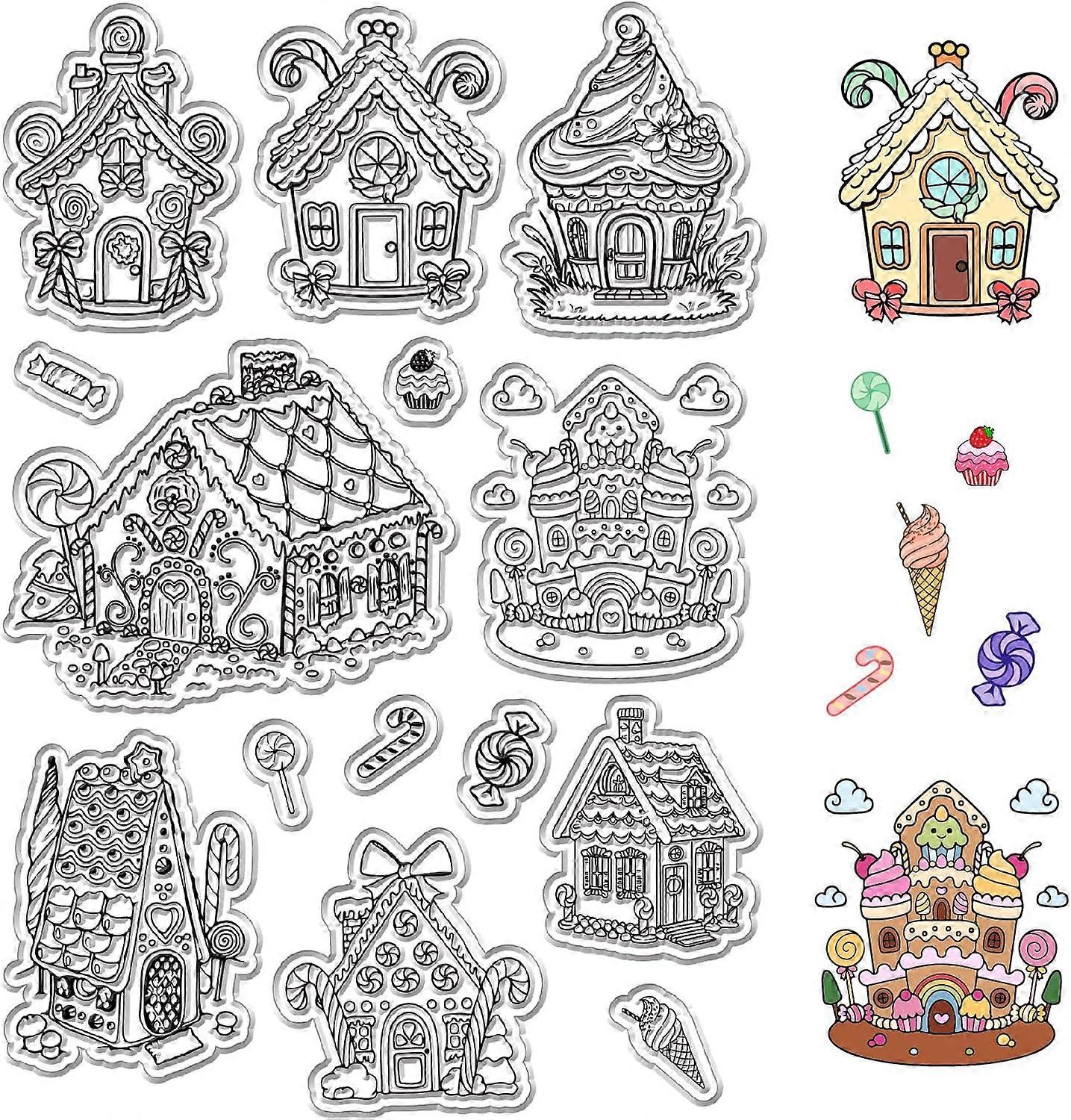Dessert House Clear Stamps Ice Cream Cake Sweets Reusable Background Postmark Transparent Silicone Stamp Seals for Journaling Card Making Decor DIY Sc