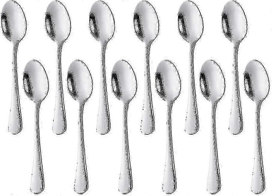 12 Stainless Steel Coffee Spoons for Dessert - 11cm - Silver - AYANE