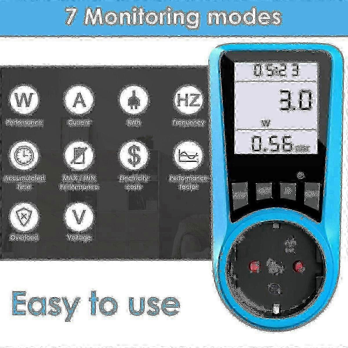 Digital LCD Power Meter Wattmeter Socket Wattage Monitor Electricity Kwh Energy Meter Measuring Outlet Power Analyzer