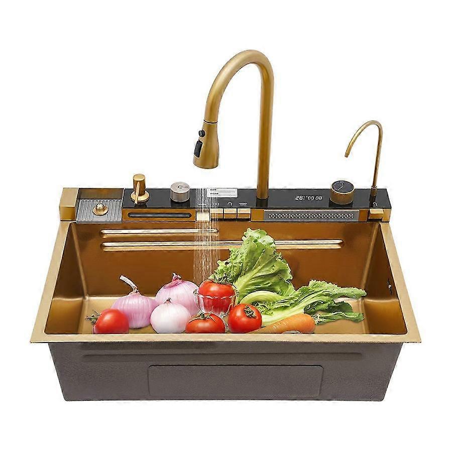 Digital Display Multifunctional Kitchen Sink with Pull-out Faucet Waterfall Design