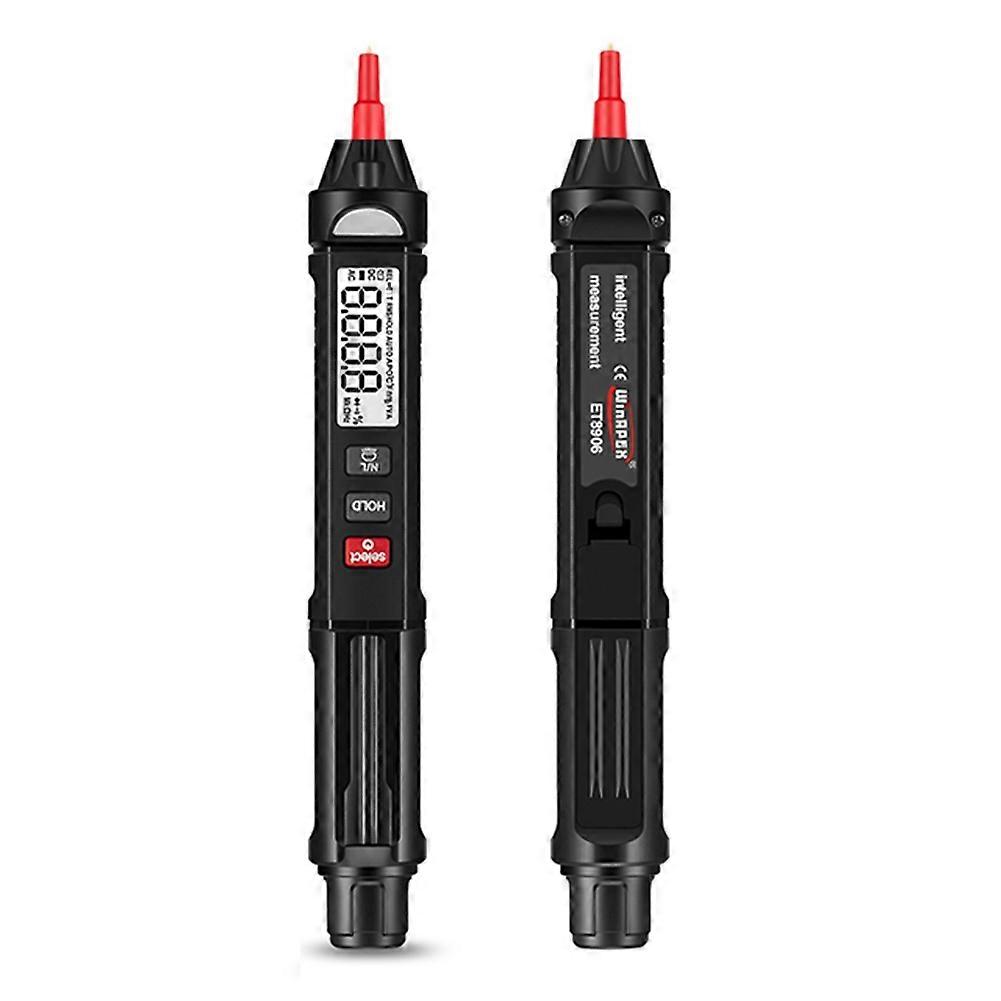 Digital Multimeter Voltage Test Pen Capacitance Meter Diode NVC Tester 1. 3-in-1 multi-function multimeter, integrated digital multimetervoltage testerphase sequence (phase sequence function only ET8908ET8909) 2. Accurately measure non-contact voltage test, ACDC voltage, current, resistance, continuity, frequency (ET8908 only), capacitance, diode, temperature, wire continuity, battery test. 3. Sensitive and accurate test: according to different input voltageresistance, the meter will automatically identify and measure. The machine has stable performance, high precision, high reliability, clear reading and overload protection. 4. Easy to use, with digital LCD display and backlight design, it can clearly display readings in dim ambient areas. (LCD display only ET8908ET8909) 5. Flashlight design, no fear of dark environment Specification: 1. DC voltage: 0.8-1000V 2. AC voltage: 0.8-700V 3. Resistance: 0.1-60MΩ 4. Capacitance: 10nF - 60mF 5. Frequency: 1Hz-10MHz 6. Temperature: - 20-50 degrees Celsius0-122 degrees Fahrenheit 7. Diode: 3.0V 8. Buzzer: 0.1-50Ω 9. Power supply: 1.5V 1 x AAA (not included, bring your own) 10. Low voltage reminder: Yes 11. Automatic shutdown: Yes 12. Backlight: Yes 13. Save data: yes 14. Shell material: ABS 15. Dimensions: about 171 x 21 x 21mm6.73x0.82x0.82inch Model: ET8906 -Screen: Ordinary LCD screen -Multimeter: yes -Voltage test pen: yes -Phase sequence table: no -Voice broadcast: no -Frequency test: no ET8908 -Screen: color screen -Multimeter: yes -Voltage test pen: yes -Phase sequence table: Yes -Voice broadcast: no -Frequency test: yes ET8909 -Screen: color screen -Multimeter: yes -Voltage test pen: yes -Phase sequence table: Yes -Voice broadcast: Yes -Frequency test: no