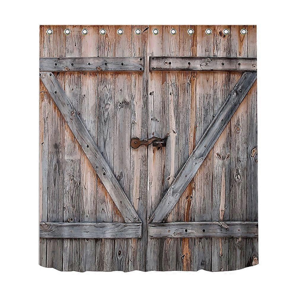 Digital Printing Waterproof Shower Curtain Polyester Material Wooden Door Pattern 150x180cm for Bathrooms 1Pack