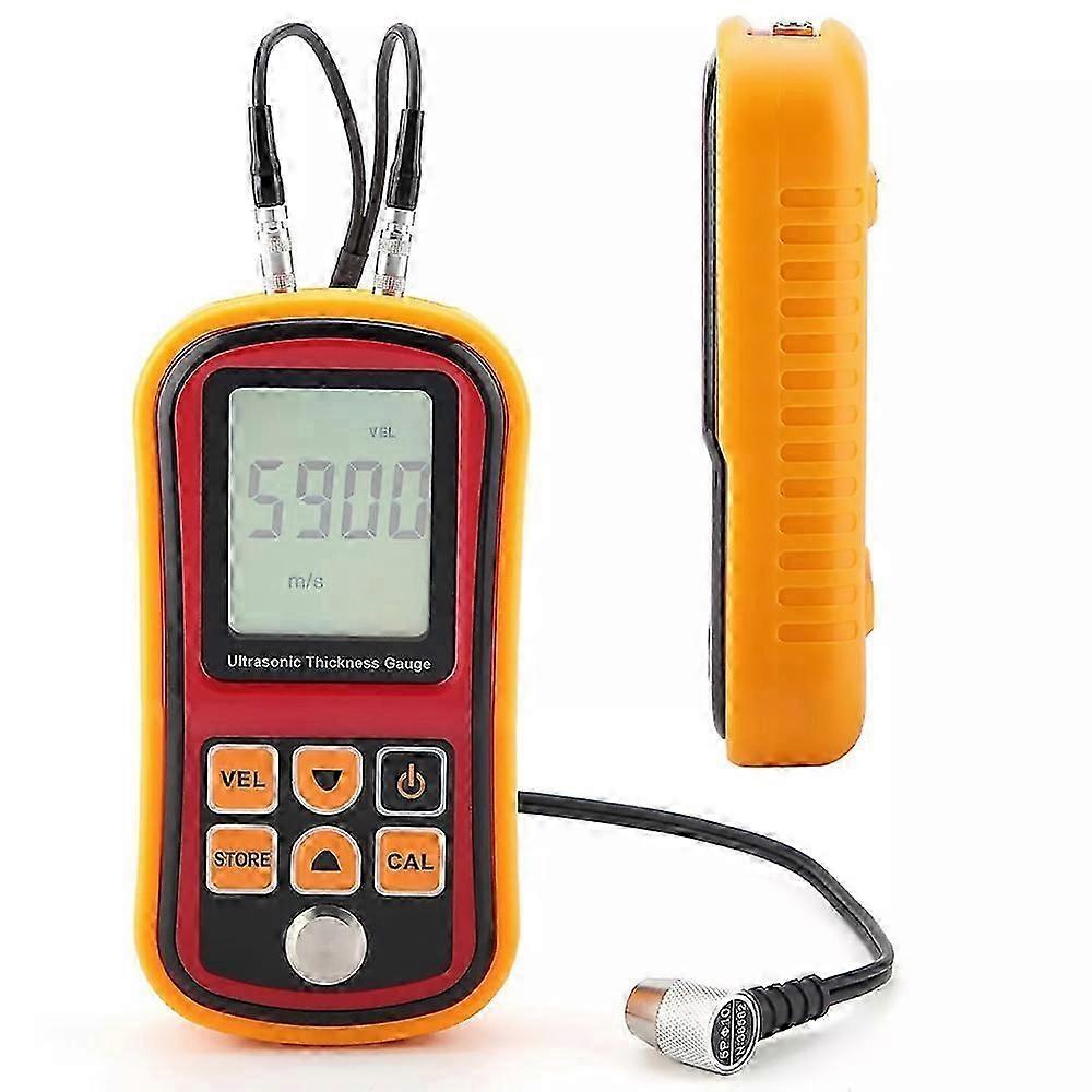Features: 1. Auto calibration to assure the accuracy. 2. Sound velocity measurement: with a given thickness to measure the sound velocity to improve accuracy. 3. Large LCD display for easy reading. 4. Low battery, auto power off function, etc. 5. Used in the field or work at heights Specification: Condition: New Model: GM100 Measuring Range: 1.2-300mm(steel) Accuracy: (1%H+0.1mm) H denotes the measured thickness Working Frequency: 5MHz Resolution: 0.1mm Minimum Limit for Tube Measuring(steel): dia. 20*3.0mm(steel) Sound Velocity Range: 1000-9999m/s Color: Orange Power Supply: 3 * 1.5V AAA Battery(not included) Weight: Approx. 400g / 14.1oz Size: Approx. 15 * 8 * 3.2cm / 5.9 * 3.2 * 1.3in