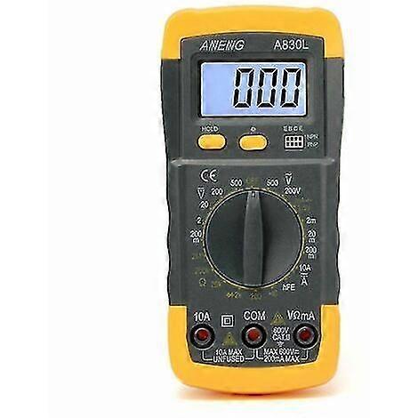 Description LCD digital multimeter Line length: 70 cm Size (L*W*H): 14 x 6.5 x 3 cm Power supply: 9 V battery model 6F22 Measurement function: resistance, direct current, voltage, capacitors, alternating current, direct voltage, batteries. Features: 1. Small and compact design. 2.Display backlight is optional. 3.A great electronic measuring instrument. 4.Can be used to measure AC/DC voltmeter, ohmmeter, diode. 5.Fit for schools, factories, families and amateur wireless enthusiasts.