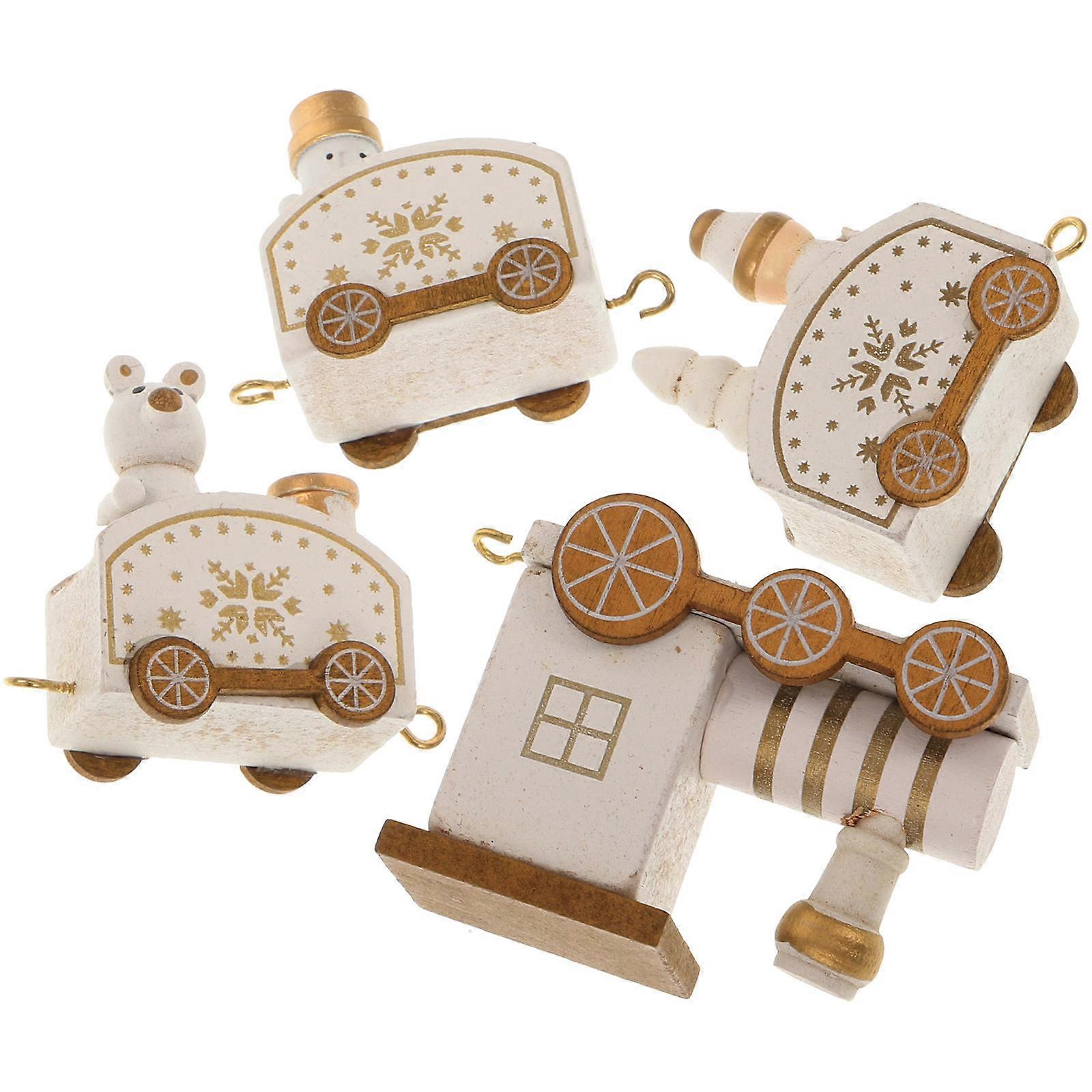 Desk Ornaments Christmas Wooden Mini Train Decoration White 21.00X5.00X5.00CM Chic Design 1Pack