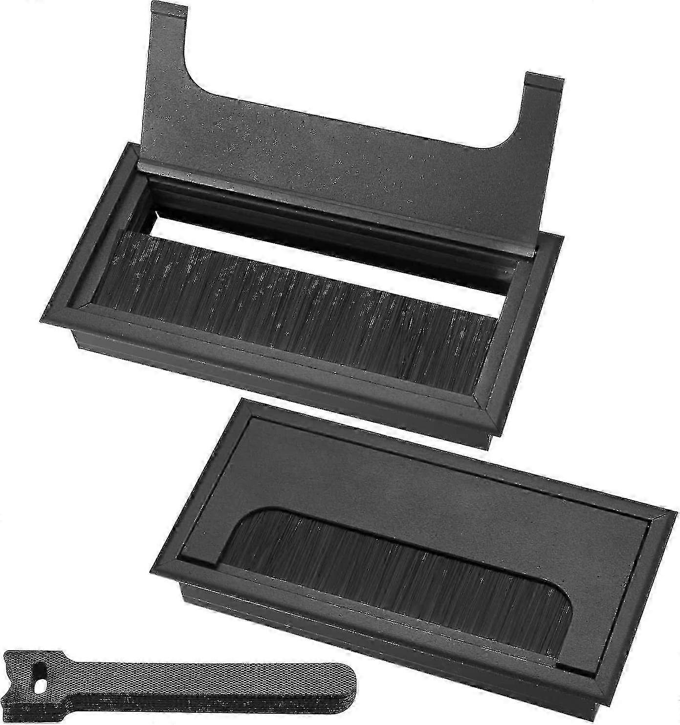 Desktop Inset Cable Glands (2 Pieces), 160x80 Mm Cable Outlet with Brush Seal, Cable Organizer, 10 Pieces Cable Ties
