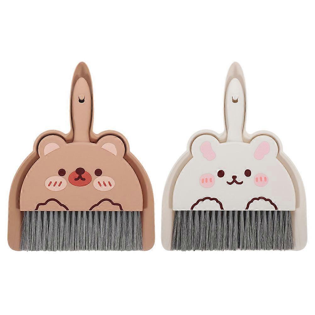 2 Set of Desktop Cleaning Broom Dustpan Table Brush Set Dining Cartoon Sweeper Cleaning Tool