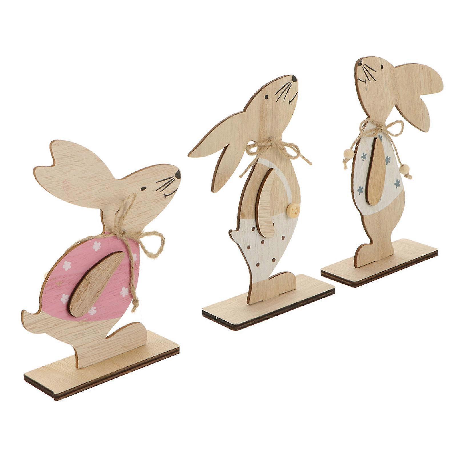 Wooden Decor Rabbit Shape Adornment For Desktop Table Easter Celebrations Featuring Design In Assorted Color 3Pcs