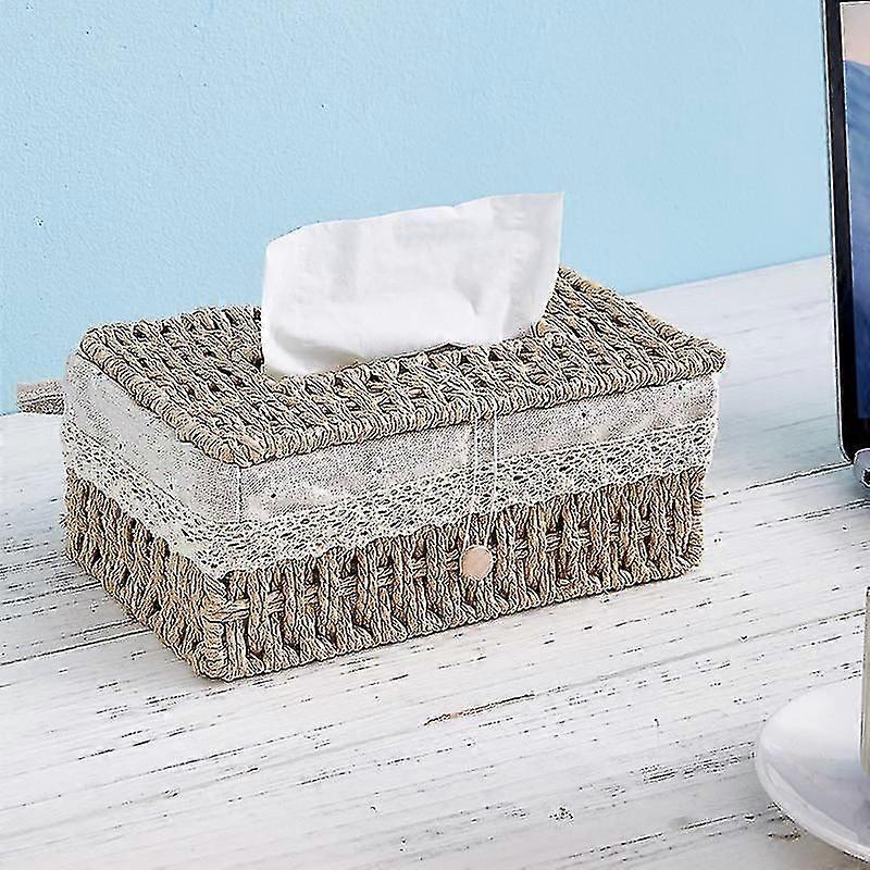 Desktop Fabric Tissue Box,living Room Dining Room Tissue Box,tissue Drawer Household Coffee Table Key Organizer Imitation Rattan Weave