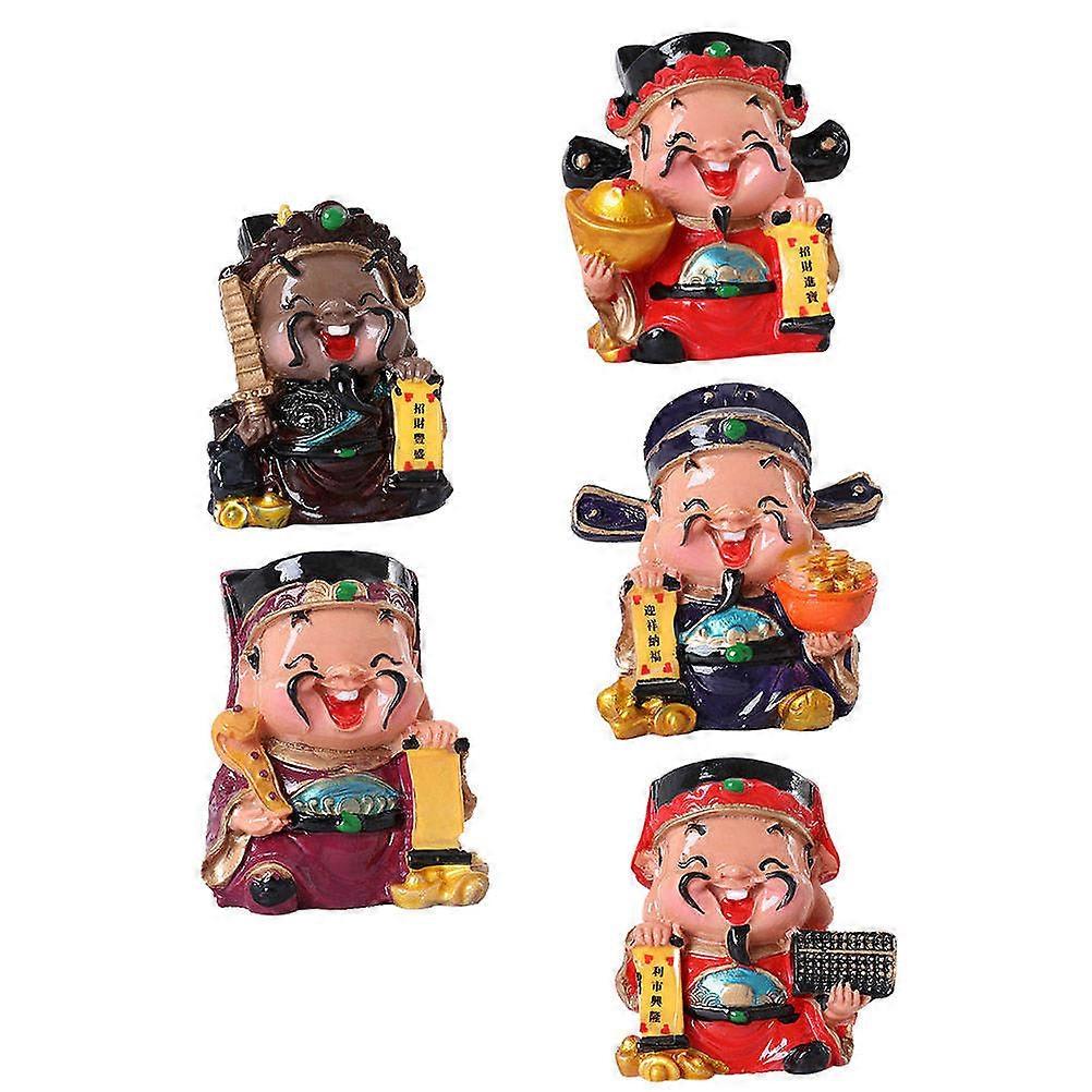 5pcs Mini Resin Wealth God Figurines for Desktop Home Decoration