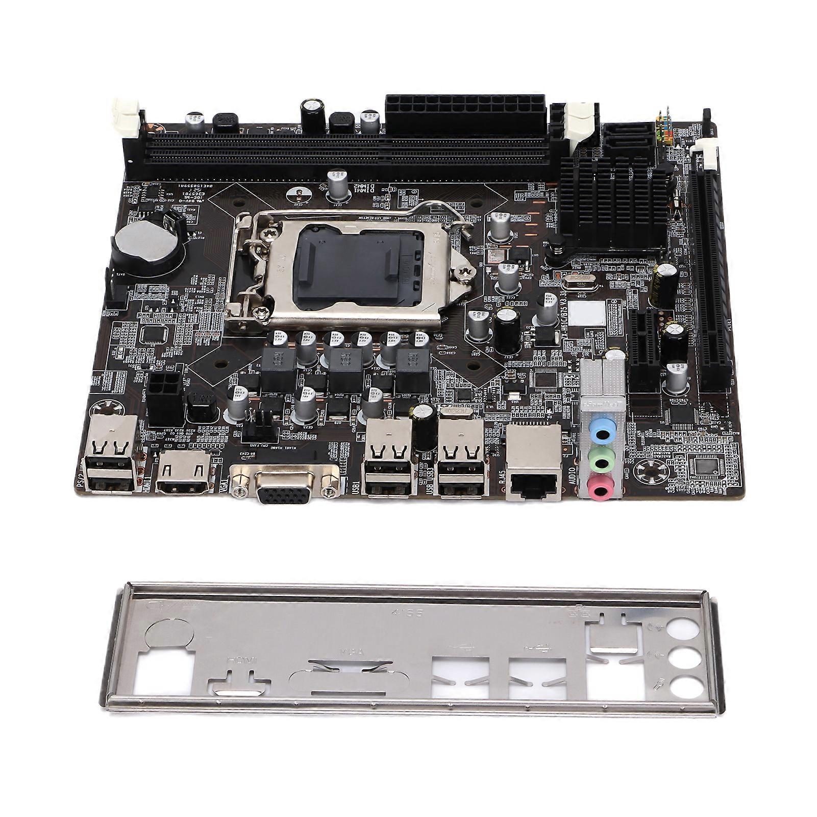Features: 1.[Material] Made of high quality materials, the desktop motherboard is durable, sturdy and stable. 2.[CPU Support] The motherboard integrates a sound card, a graphics card, and a network card, supports for Intel Core I7 I5 I3, for Pentium, for Celeron. 3.[CPU Slot Type] Adopts sophisticated production technology, supports for Intel Socket 1155 interface processor. 4.[DDR3 Memory Type] The desktop motherboard memory type is DDR3, which has high working efficiency. 5.[Power Socket] Has 4 pin power interface and 24 pin power interface, has excellent performance and long service life. specification:Item Type: Desktop Motherboard Main Chipset: For Intel H61 Chipset Description: For Intel H61 Chipset Chip Manufacturer: For Intel Number of CPU Slot: 1 CPU Slot Type: Supports for Intel Socket 1155 Interface Processor CPU Support: Supports for Intel 1155 Full Range of Processors, for Intel Core I7 I5 I3, for Pentium, for Celeron QPI: QPI6.4GT/s Memory Type: DDR3 Memory Description: Dual Channel DDR3 1066/1333/1600 Memory Integrated Chip: Graphics Card, Sound Card, Network Card Audio Chip: Integrated Eight Channel Audio Chip Graphics Chip: CPU Built in Display Chip (Requires CPU Support) Graphics Card Slot: PCIE 3.0 16X Graphics Card Slot PCIEx1 Slot: 1 x PCIEx1 Slot IDE Slot: None FDD Slot: None External Port: Audio Interface, VGA Interface, Network Card, High Definition Multimedia Interface, USB Interface SATA Interface: 2 to 4 SATAII Interfaces Memory Slot: 2 x DDR3 DIMM Board Type: Micro ATX Board Type Shape Size: Approx. 19.3 x 17.5cm / 7.6 x 6.9in Power Socket: 1 x 4pin, 1 x 24pin Power Connector Built in Button Battery: CR2032l/240mAh PackageList: 1 x Desktop Motherboard 1 xBaffle
