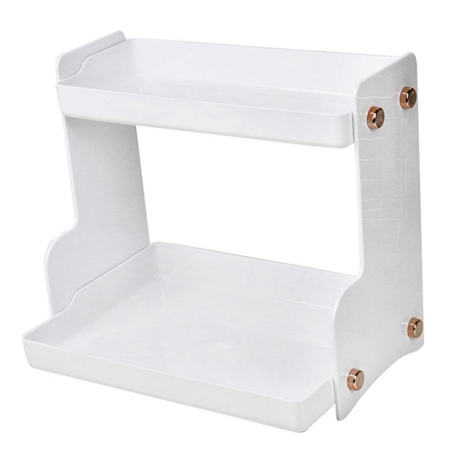 Desktop Storage Rack Double Layer Iron Large Capacity Cosmetic Organizer Shelf for Bedroom Study White