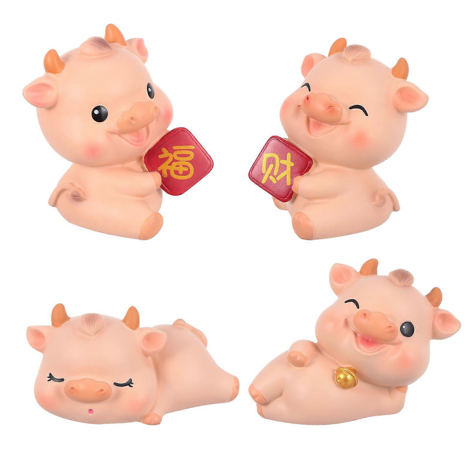 Desktop Decorative Resin Ornament Bull Figurine Office Decor Assorted Color Includes 4Pcs