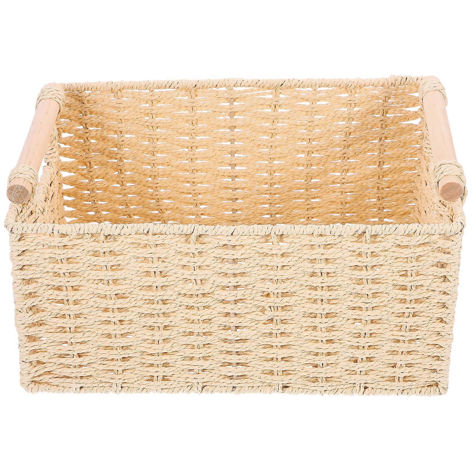 This storage basket can store various items, such as sundries, fruits, snacks and so on, delicate and practical. The baskets are made of wood, iron, paper rope material with stable performance, with good bearing capacity, safe and no smell, and . Features -Color:Beige -Material:Wood, iron, paper rope -Size:31.00X21.00X17.00cm/12.18X8.25X6.68in - Wood, iron, paper rope material, which is not easy to deform or break, the woven basket can be used for a long time. - The reasonable structure can easily store all kinds of small objects, making your desktop tidier. - Practical storage basket or as a decoration, suitable for your bedroom, bathroom, living room, closet, shelf or anywhere! - Simple and generous look design makes this basket match very well with many homes' decorative styles. - It can be put in your living room, kitchen, hotel, and so on, both as an ornament for your home or a gift to your friends. Package list: 1 x woven basket