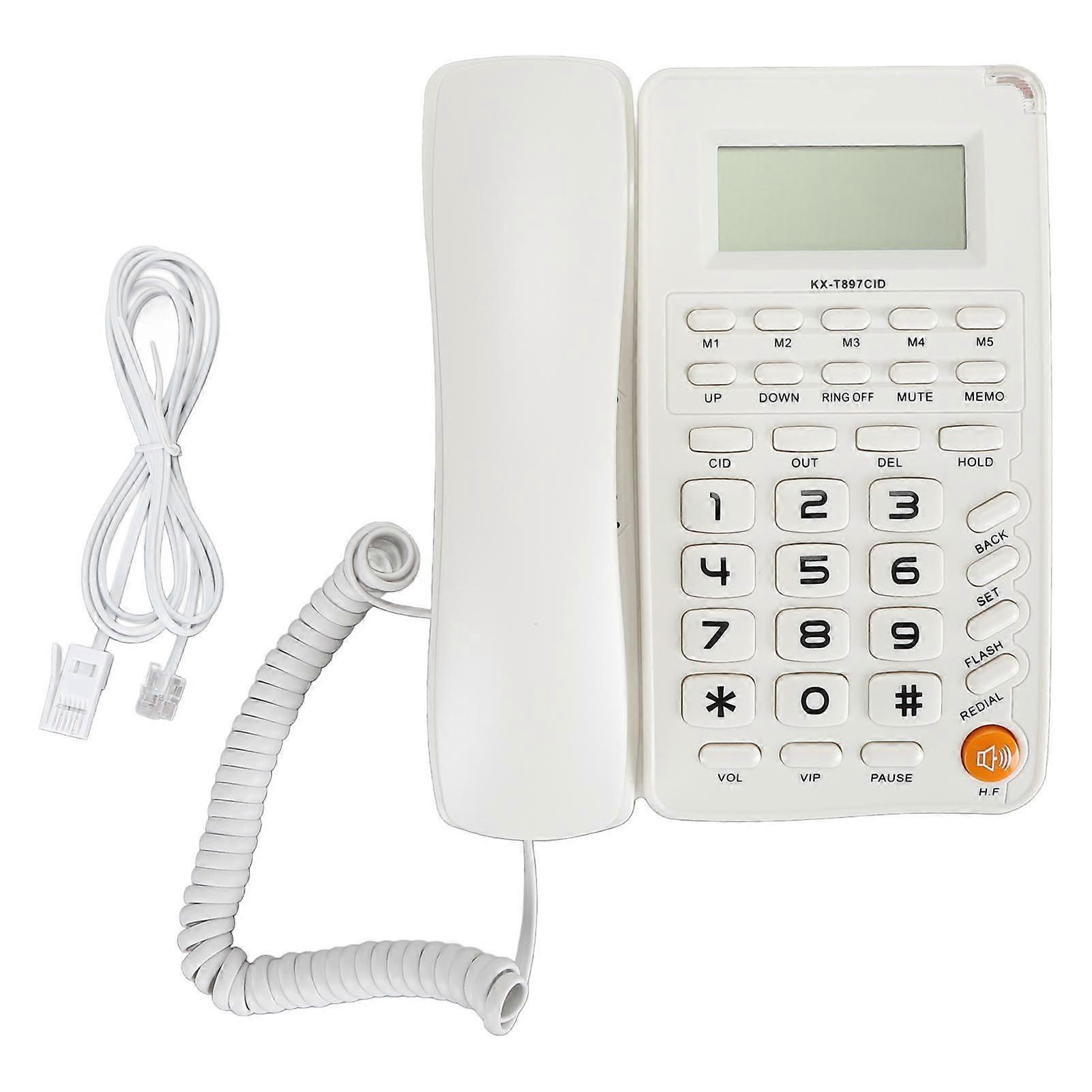 Desktop Telephone Big Button Corded Landline Telephone 16 Bit HD Screen Wired Phone for Home Hotel Office White
