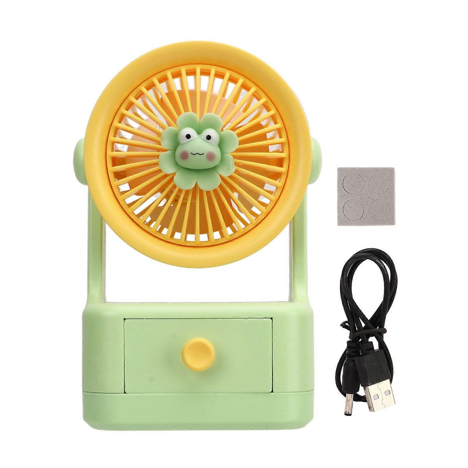 Desk Fan USB Charging Adjustable Angle Cute Portable Multifunction Air Circulator Fan for Office Travel Yellow Green YMHC