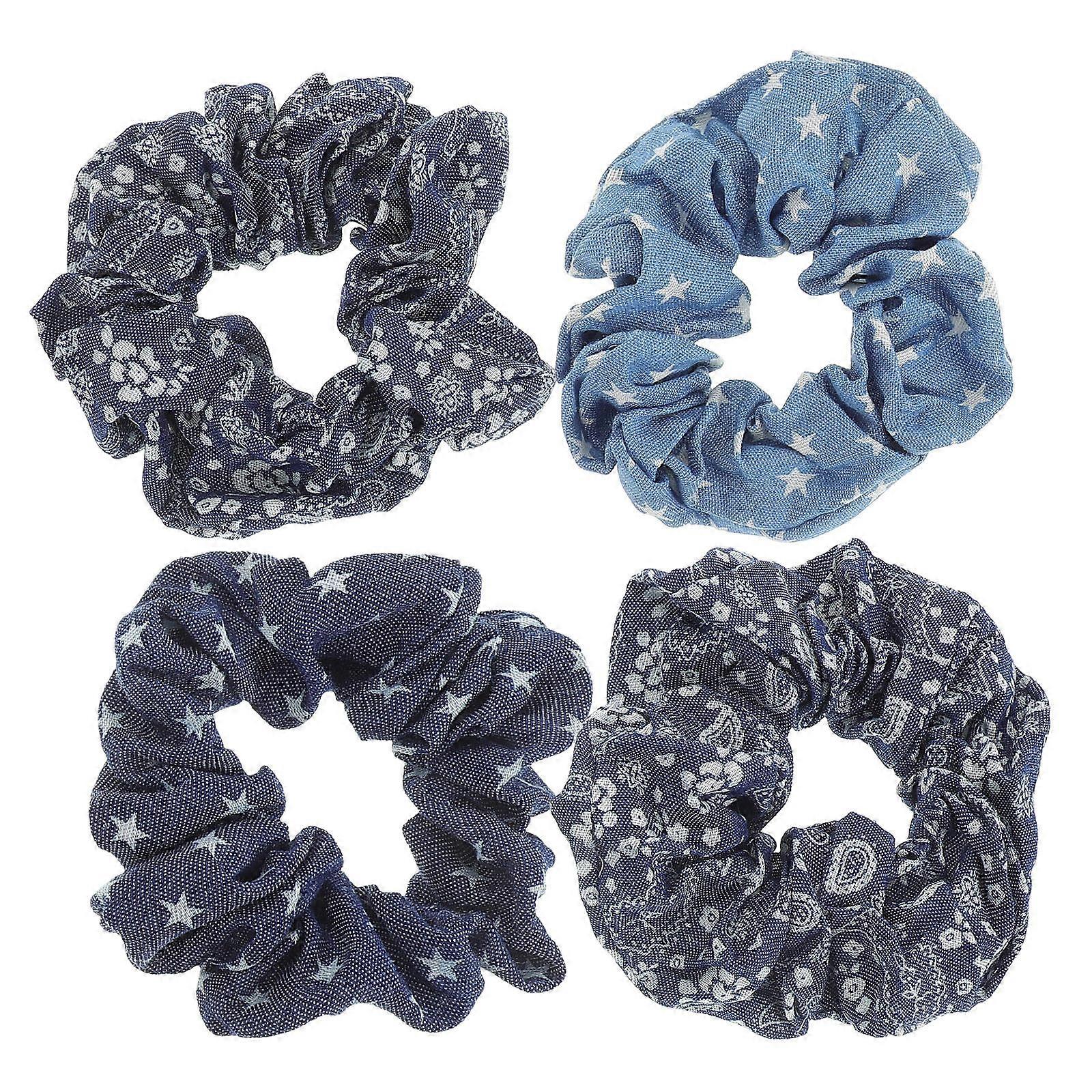 Denim Hair Scrunchies Set of 4 Stretchy Hair Ropes Fashion Ponytail Holders for Women Stylish Random Designs