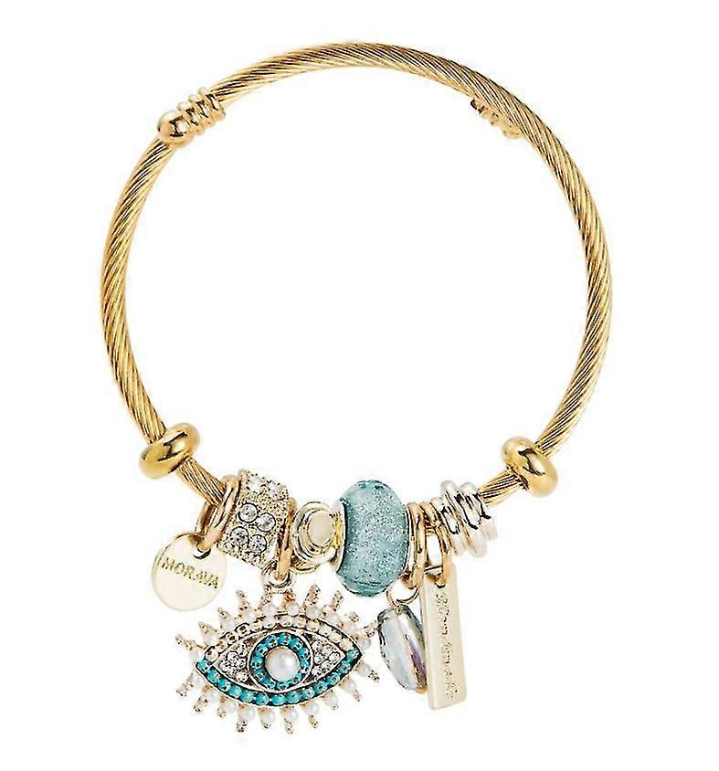 Material: Alloy + Stainless SteelQuantity: One piece. It's a great gift for yourself, family or friends on anniversaries, Christmas, Valentine's Day, birthdays or wedding celebrations. Size: 5.5cm in diameterColor: Light BlueHigh Quality: Made of high quality material, suitable for all body types, not easy to fade, moderate weight, comfortable to wear, unisex, healthy choice. Important Jewelry: Focused on the unique style and temperament of women, this bracelet is a timeless classic design that puts the modern woman in the center of every occasion, showing a unique charm and temperament, the perfect set Perfect for girls or ladies bracelets. Perfect Gift: This bracelet is the perfect gift. This is a touching surprise for any good girl or lady. Give this unique and attractive gift to your girlfriend, wife, family and best friends on Mother's Day, Anniversaries, Christmas, Valentine's Day, Birthdays, Celebrations and other holidays. Meaningful Gift: This rhodium plated bracelet is an expression of timeless love, making it a great gift for the important woman in life; a great addition to every jewelry collector.