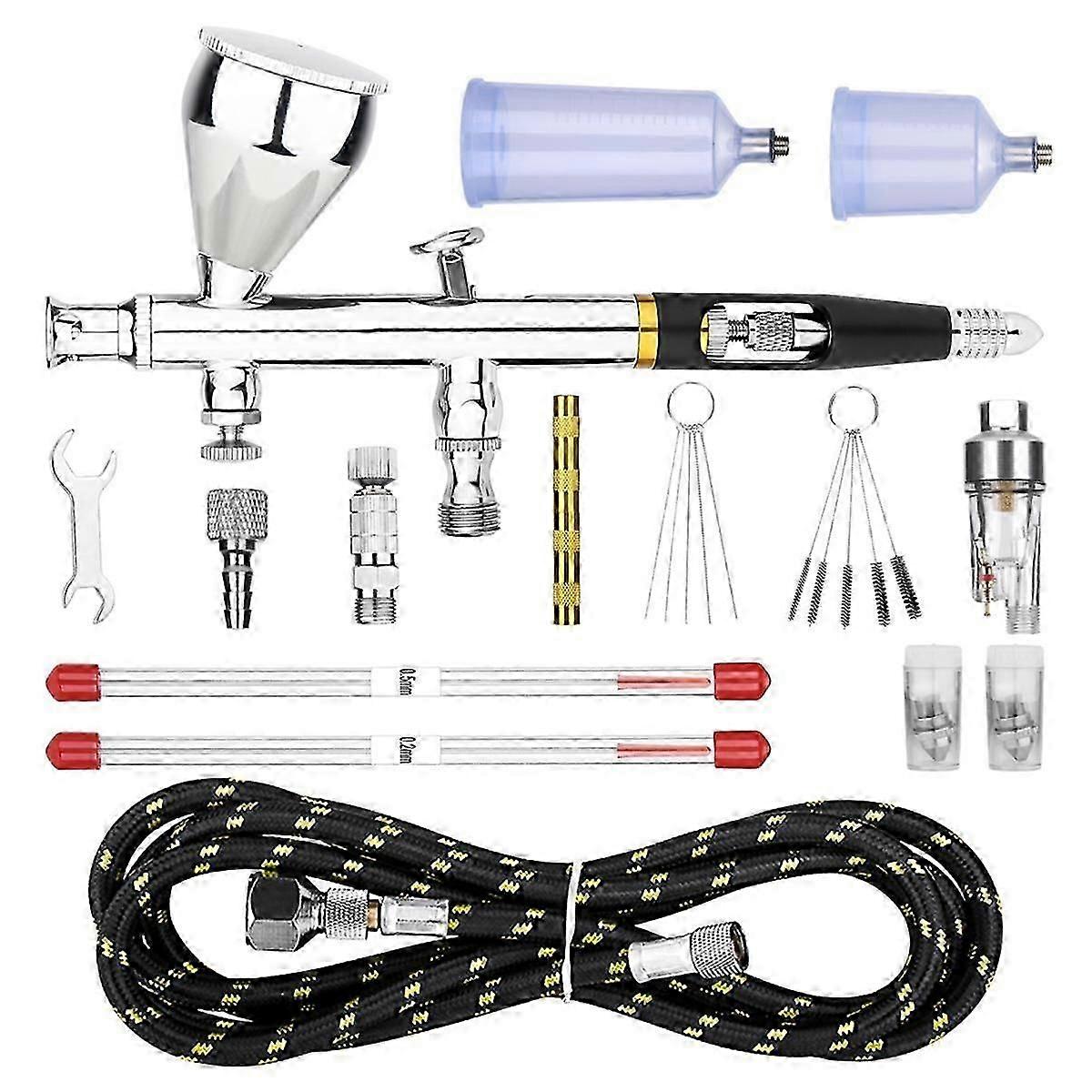 Dual Action Airbrush Fluid Cups Quick Remove Air Cap Nozzle for Car Model DIY Painting Makeup Nail Art Cake Decorating-B