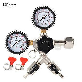 Dual Gauge Co2 Regulator,W21.8 Co2 Regulator With Check Valve,Y Splier Co2 Charger For Beer Brewing 0~3000psi, 0~60psi