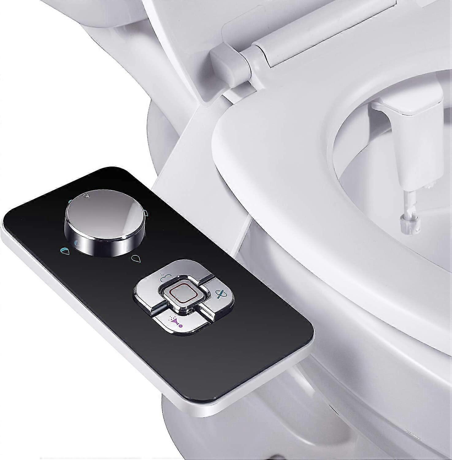 Non-electric Bidet Sprayer With Dual Self-cleaning Retractable Nozzles - Front And Back Cleaning - Adjustable Push Button For Cold Water, Black