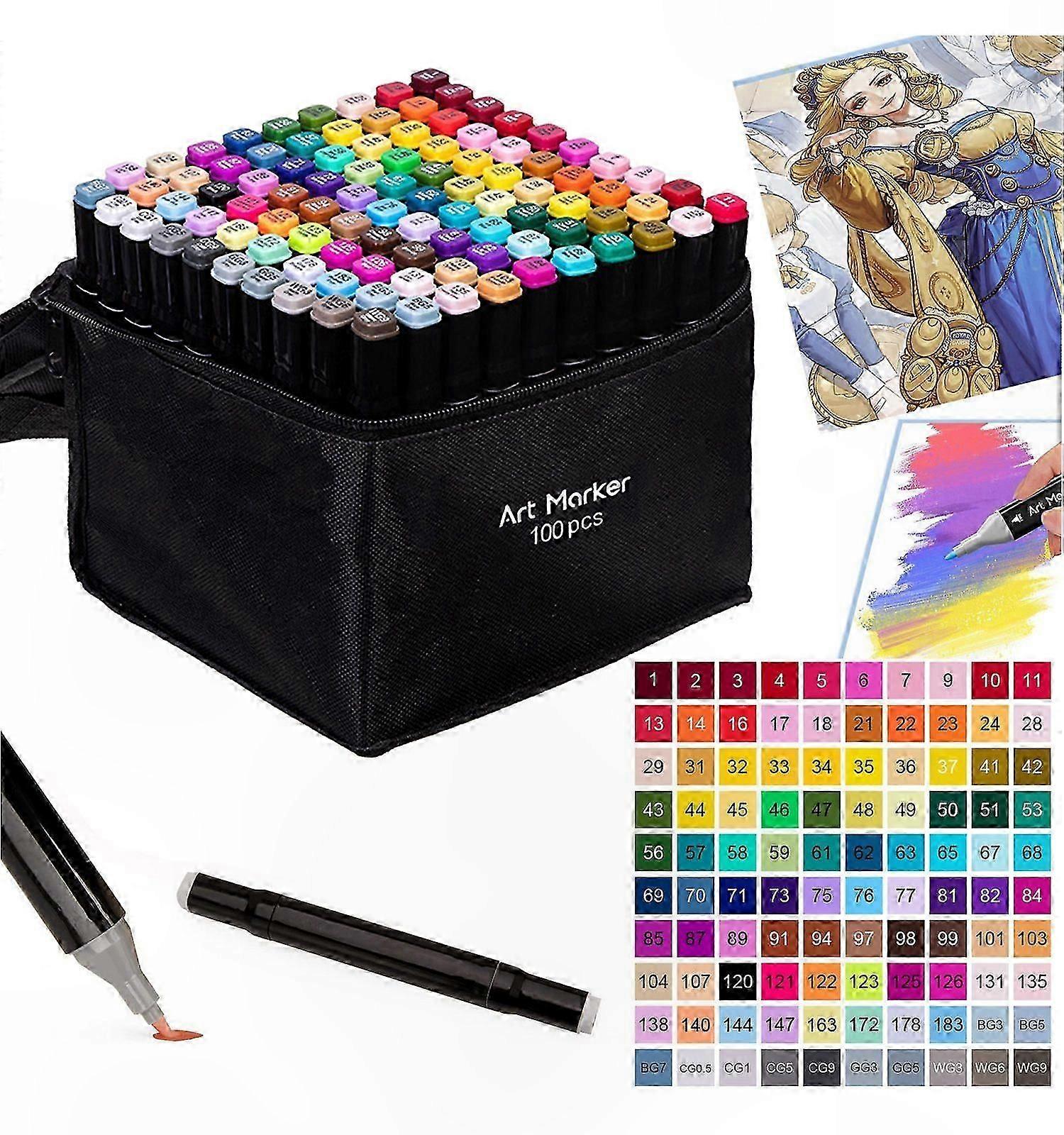 Dual-Tip Marker Set, 100 Vibrant Colors, Art Supplies for Kids, Creative Stationery Tools