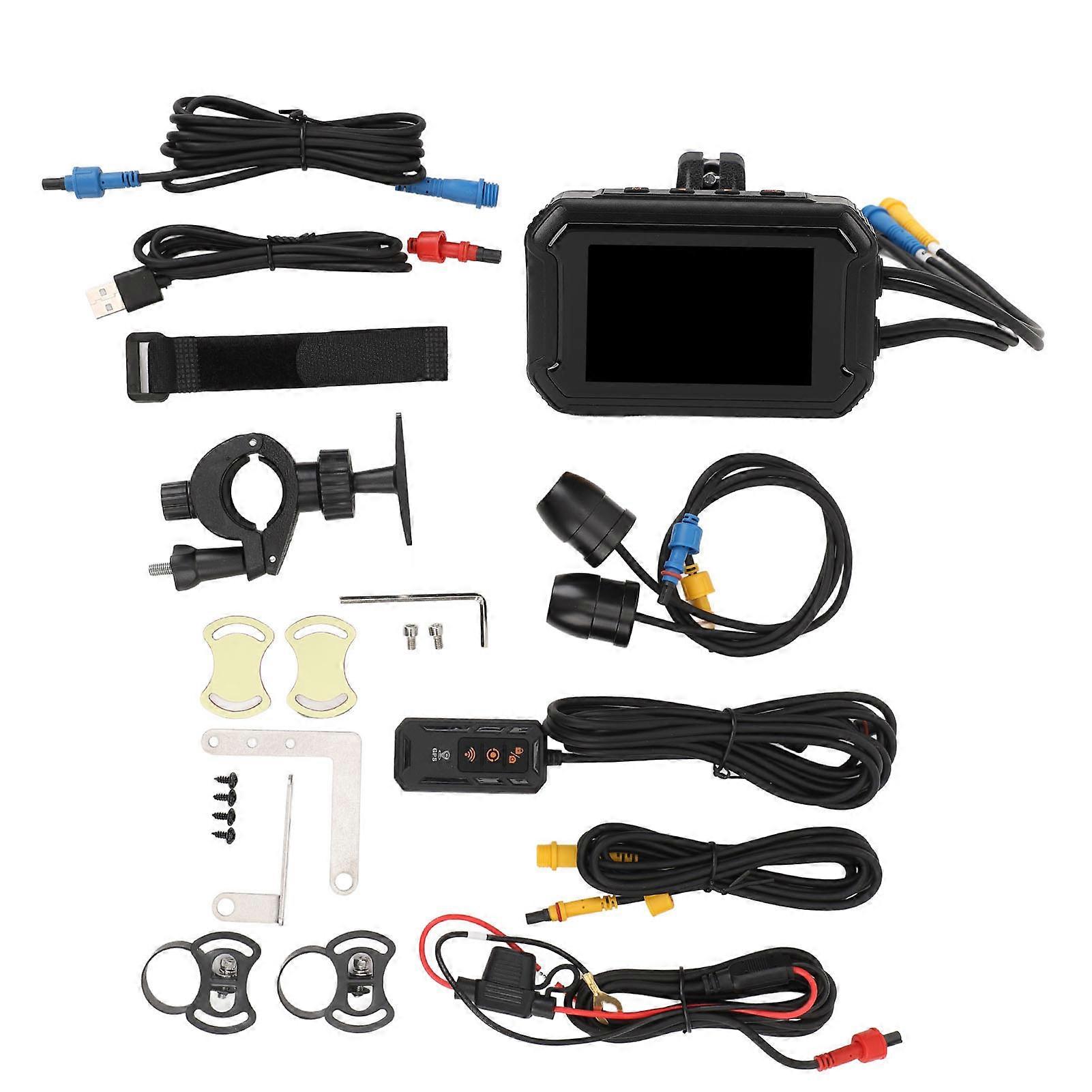 Dual Channel Motorcycle Camera 1080P WiFi Driving Recorder with 150° Wide Angle Night Vision for ATV UTV Snowmobiles Features: 1、Panoramic Recording: The dash cam is equipped with a 150° wide angle lens that provides a super large photograph angle. Whether it is beautiful scenery on the road or an emergencies, everything can be captured clearly, leaving the most comprehensive view for your riding record. 2、Convenient WIFI Connection: Easily and conveniently access your recordings with this motorcycle dash cam's WiFi connectivity feature. It comes with automatic start up recording, loop recording and automatic cleaning when the memory is full. Additionally, it includes a remote control for easy use. 3、Clear Recording: Leveraging a high definition 1080P camera, our dash cam catches clear images regardless of the hot sun or the dark night. With the equipped night vision feature, you can record clearly even in dark environments, capturing real time road conditions to ensure your driving safety. 4、Front Rear Dual Recording: This device provides front and rear double camera recording function to ensure a comprehensive recording of the road conditions. You don't have to be distracted, just keep your eyes on the road, and we will clearly record all driving information for you. 5、Professional GPS: The motorcycle driving recorder supports GPS, which can record the riding trajectory and speed of your motorcycle, providing necessary information when needed, giving you professional and reliable use. Specification: Item Type: Motorcycle WIFI Dash Cam Material: ABS, Metal Resolution: 1080P Front and Rear Cameras Lens: 150° Wide Angle Waterproof Level: IP67 Recording: Auto Start with Vehicle, Boot Recording, Loop Recording,?Memory Full Automatic Cycle Clearing WIFI: Support APP Connection GPS: Support, Record Motorcycle Driving Trip, Speed Remote Control: One Click Capturing, Lock File Other Features: Collision Lock File, Picture in Picture Dual Display, Sound Recording, TS Stream Technology Memory Card: Maximum 128GB (Memory Card Not Included) Operating Voltage: DC5-12V Language: Support Multiple Languages, English, Chinese, Spanish, Russian, German, French, Polish, Turkish, Arabic, Hebrew, Italian, Czech, Japanese, etc. Fitment: for Motorcycles, ATV, UTV, Snowmobiles, etc. Package List: 1 x Main Unit 2 x Cameras 1 x Controller 1 x Main Unit Bracket 1 x Pack of Accessories (13PCS) 2 x Camera Cables 1 x Voltage Reducing Cable 1 x Power Cable 1 x Strap 1 x User Manual