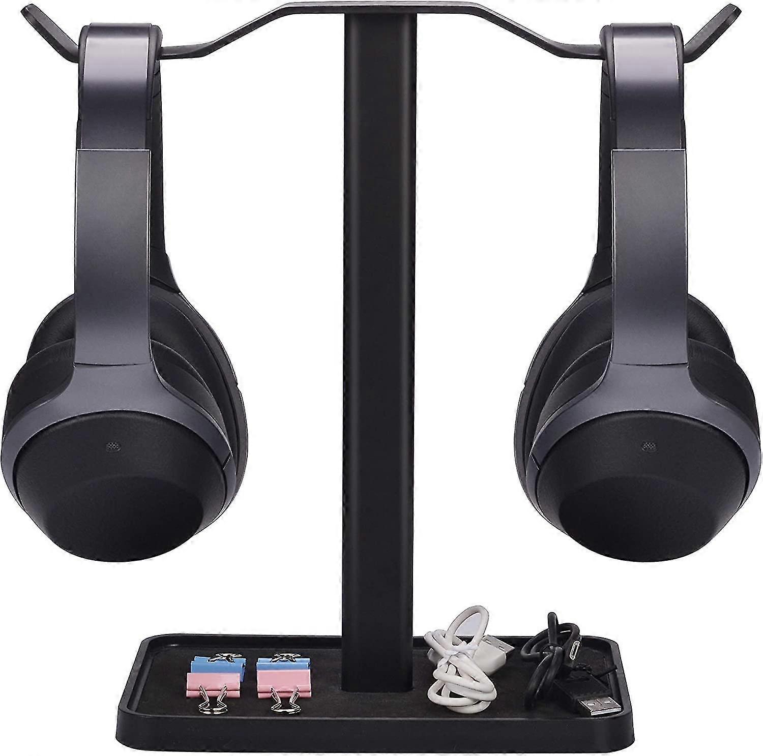 Dual Headphones Stand For Desk, Aluminum Alloy & Metal Gaming Headsets Holder Hanger Black