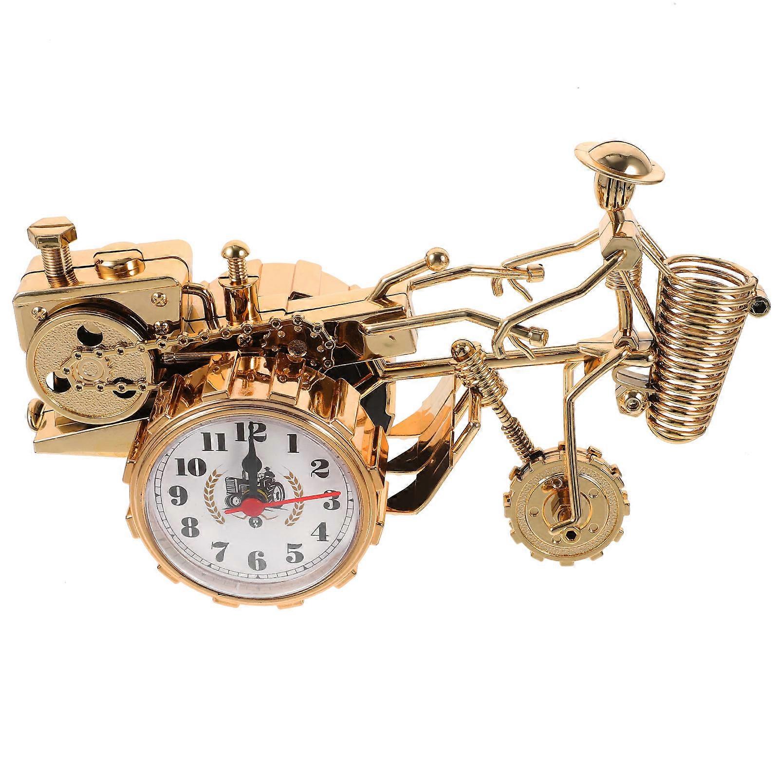 Dual Use Clock Penholder Tractor Model Penholder Clock Traditional and Modern Combination Home Desktop Decor Golden 23.50X15.00X10.00cm 1Pcs