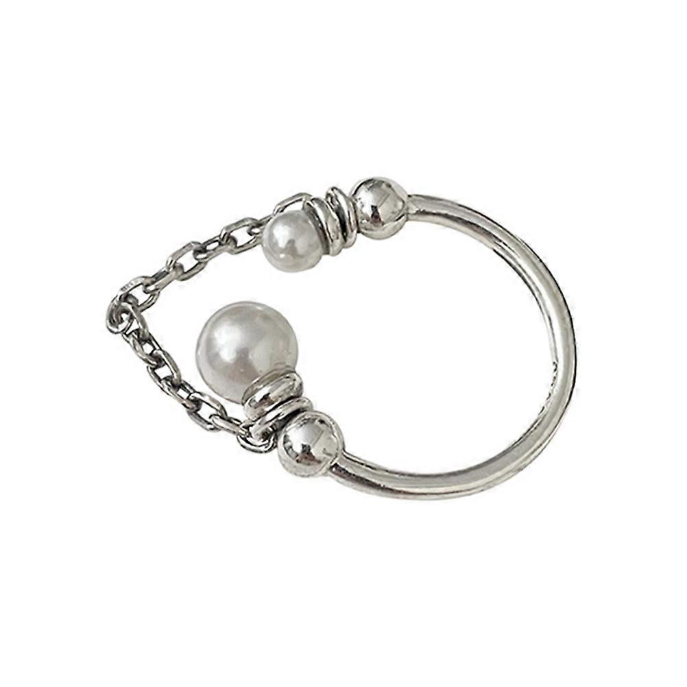 Delicate Pearl Chain Open Ring Girl Pearl Chain Adjustable Ring for Women