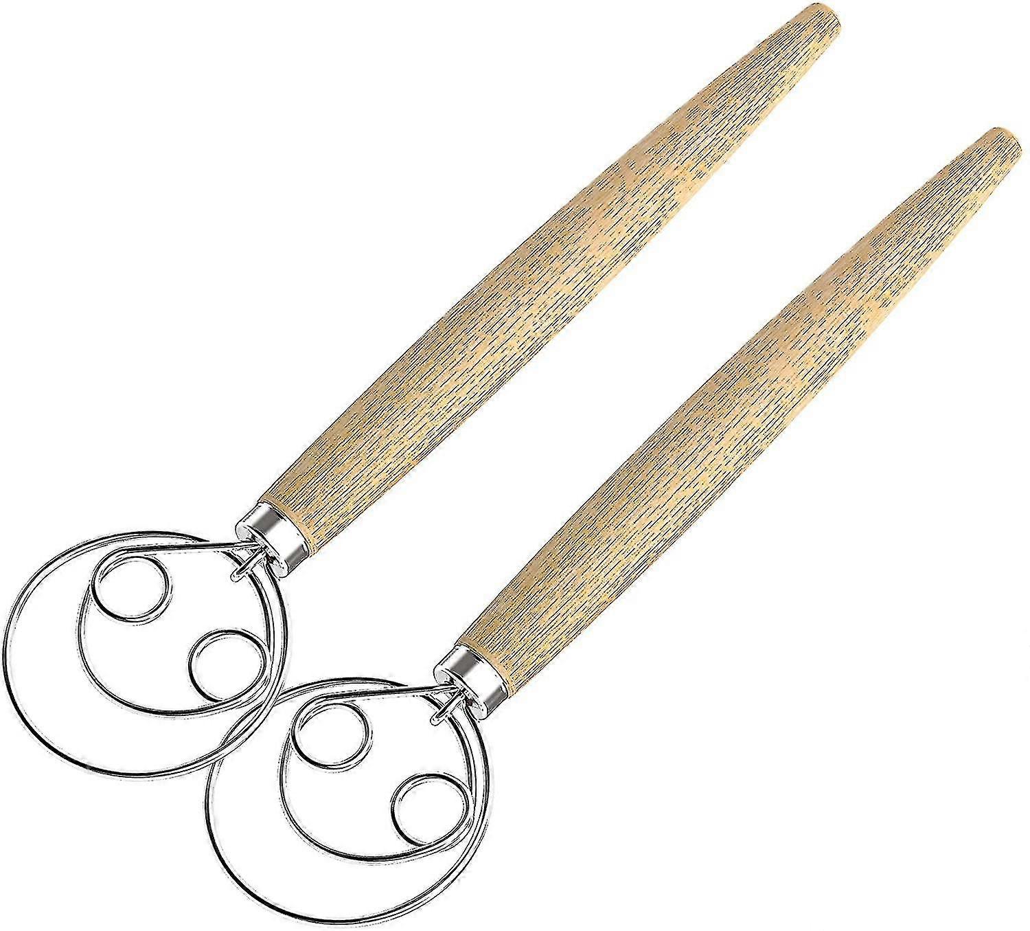 Danish Dough Whisk, 2 Pack Danish Whisk Hook 13inch Stainless Steel Dutch Style Bread Whisk Wooden Hand Mixer Making Tools For Cake, Bread, Cookie, Pi